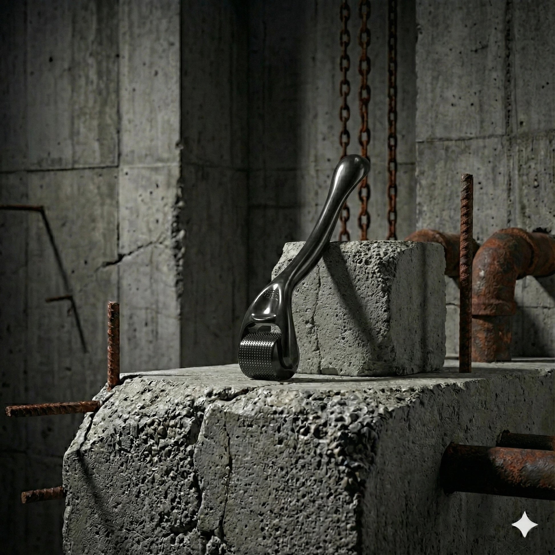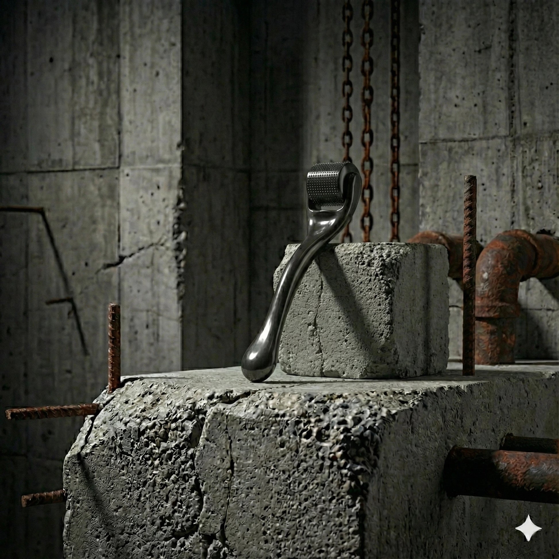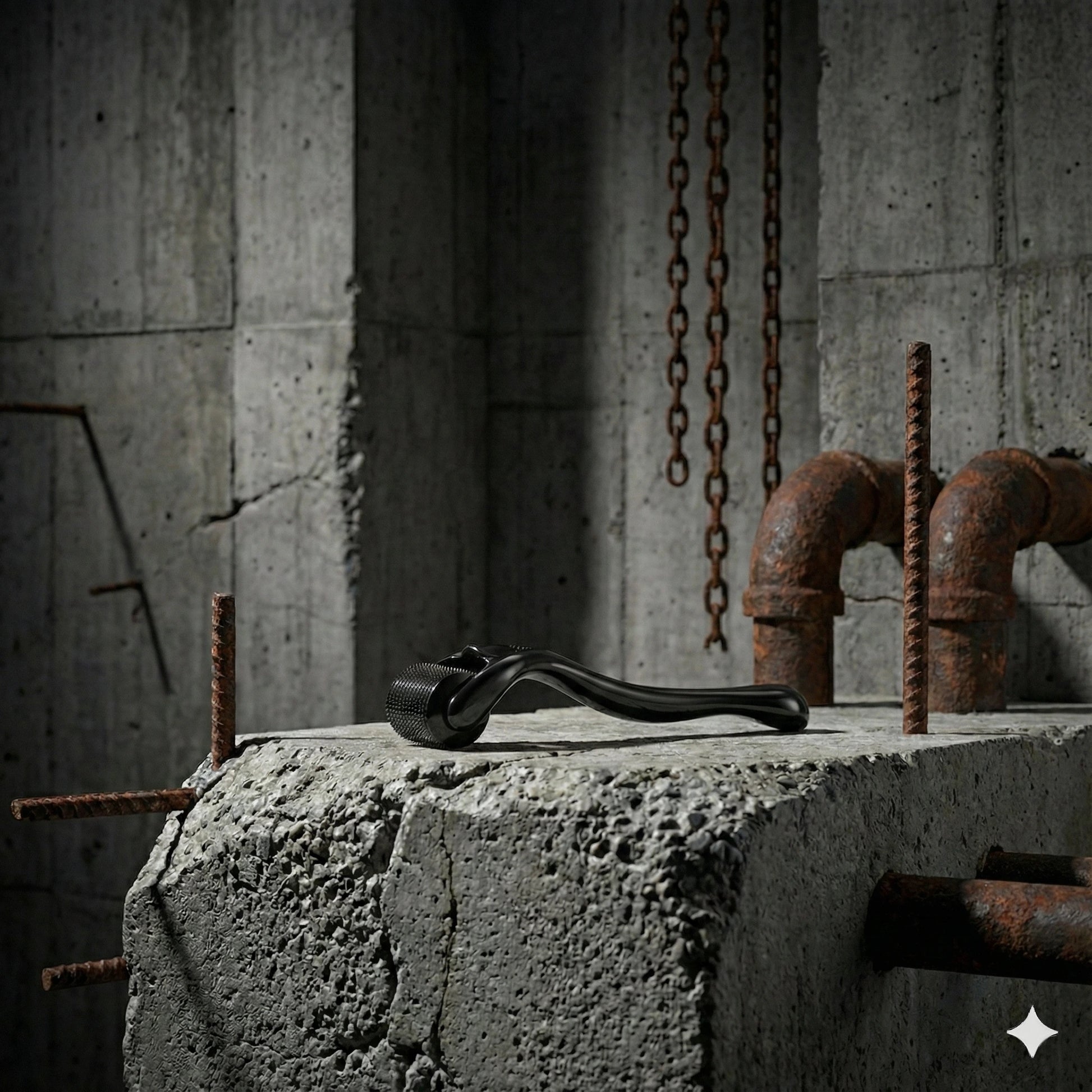 This precision tool uses hundreds of microscopic titanium needles to puncture the top layer of the dermis. This serves two tactical purposes: